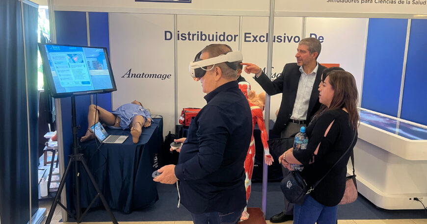 Nuestro stand fue un centro de actividad, donde los visitantes tuvieron la oportunidad de interactuar de cerca con algunas de nuestras soluciones más avanzadas. Uno de los grandes protagonistas fueron los innovadores simuladores de realidad virtual XR-Clinic y MVR-Nursing de Nasco Healthcare, que ofrecen entornos de aprendizaje inmersivos y realistas, ideales para la formación clínica. También exhibimos la Anatomage Table, la primera mesa de anatomía y disección virtual en escala real, que asombró a todos con su capacidad para transformar la enseñanza y la práctica médica.